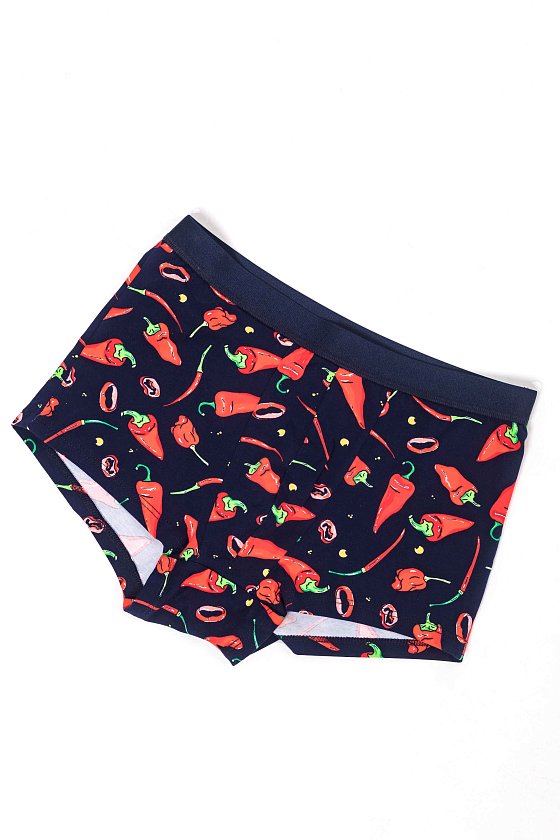 Боксеры укороченные из кулирки с лайкрой с набивным рисунком. С отделочной резинкой на поясе.