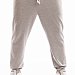 Брюки из однотонного футера с лайкрой. С притачным поясом на резине и шнуре, по бокам размещены карманы. На кармане декоративная нашивка. Низ брюк собран на резинку.