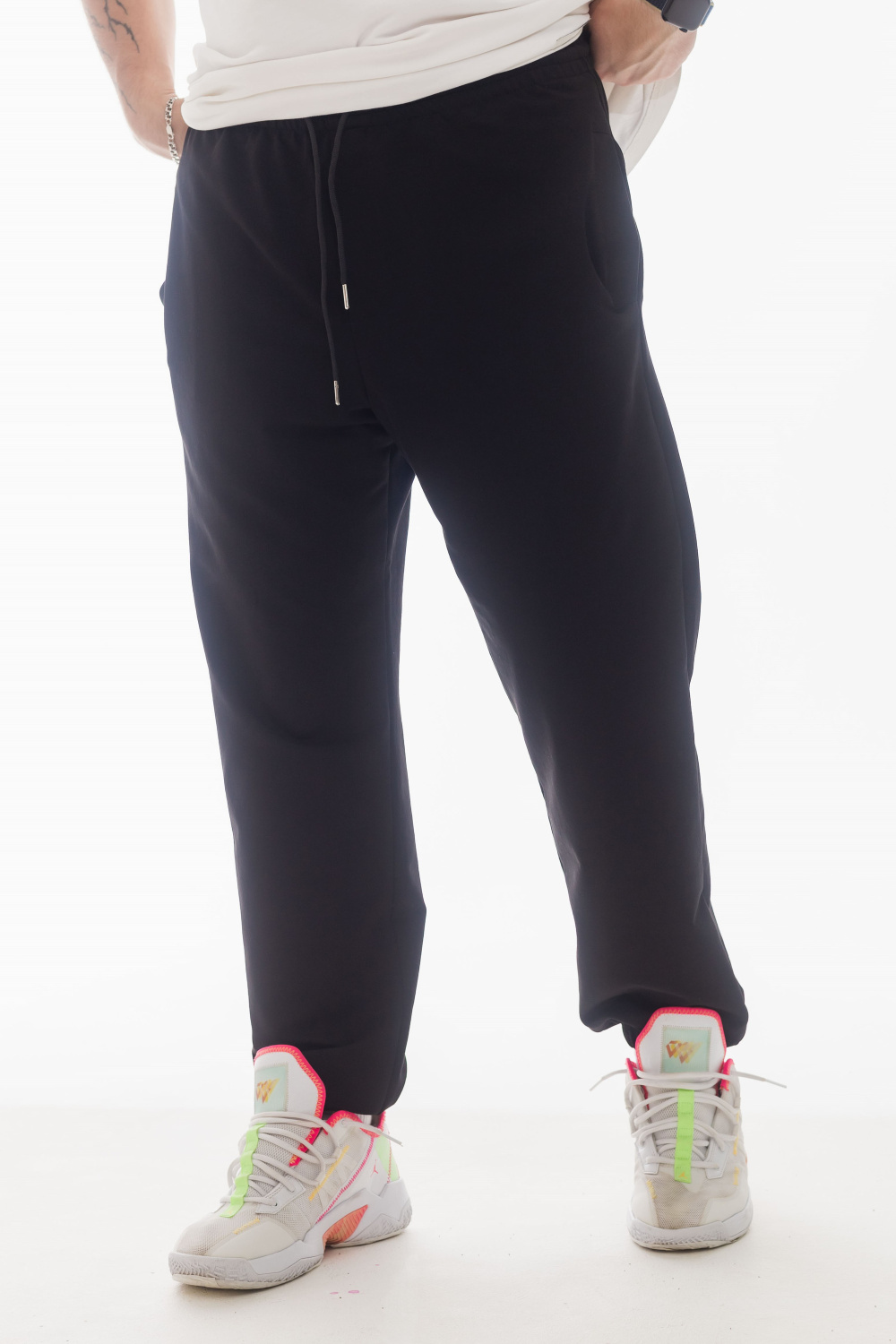 Мужские брюки выполнены из мягкого футера и станут отличной базовой моделью для повседневного гардероба. Свободный крой обеспечивает удобство движений. Пояс на резинке со вставленным шнуром для регулировки посадки. В боковых швах расположены карманы с листочкой, а по среднему шву передних половинок — аккуратная имитация гульфика. Низ брюк собран на резинку, что делает модель практичной и удобной для ежедневной носки.