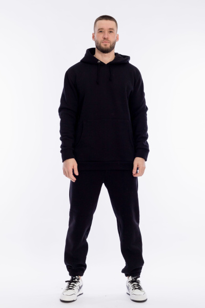 Брюки мужские из однотонного полотна с начёсом. В брюках два боковых кармана и притачной пояс на резине и шнуре. Низ брюк на резинке.