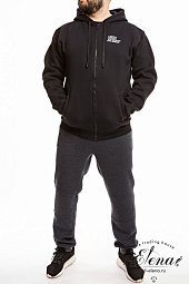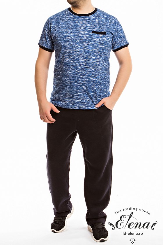 Мужские брюки с карманами по бокам выполнены из полотна с начёсом. Пояс брюк на резинке.