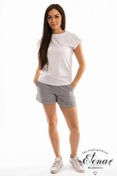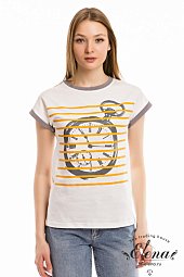 Мужская футболка выполнена из кулирки с лайкрой. В плечевой части отделочные полосы. Футболка с коротким рукавом и круглым вырезом горловины с притачной планкой из рибаны.