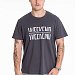 Футболка свободного силуэта из однотонного х/б полотна с коротким рукавом, круглый вырез горловины оформлен планкой. Спереди нанесён принт.