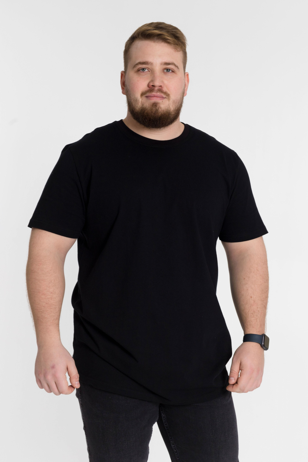 Мужская футболка выполнена из однотонного хлопкового полотна. Горловина имеет круглый вырез. Свободный крой футболки обеспечивает свободу движений. Благодаря натуральному составу ткани, изделие носится долго и с комфортом.