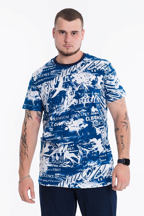 Мужская футболка из хлопка с набивным рисунком и круглым вырезом — отличный выбор для повседневного гардероба. Свободный крой обеспечивает удобство и не сковывает движений.