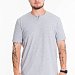 Футболка мужская, выполнена из однотонной хлопковой ткани с добавлением лайкры. Свободного кроя, короткий рукав. Горловина с круглым вырезом, отделанным декоративной планкой с пуговицами.