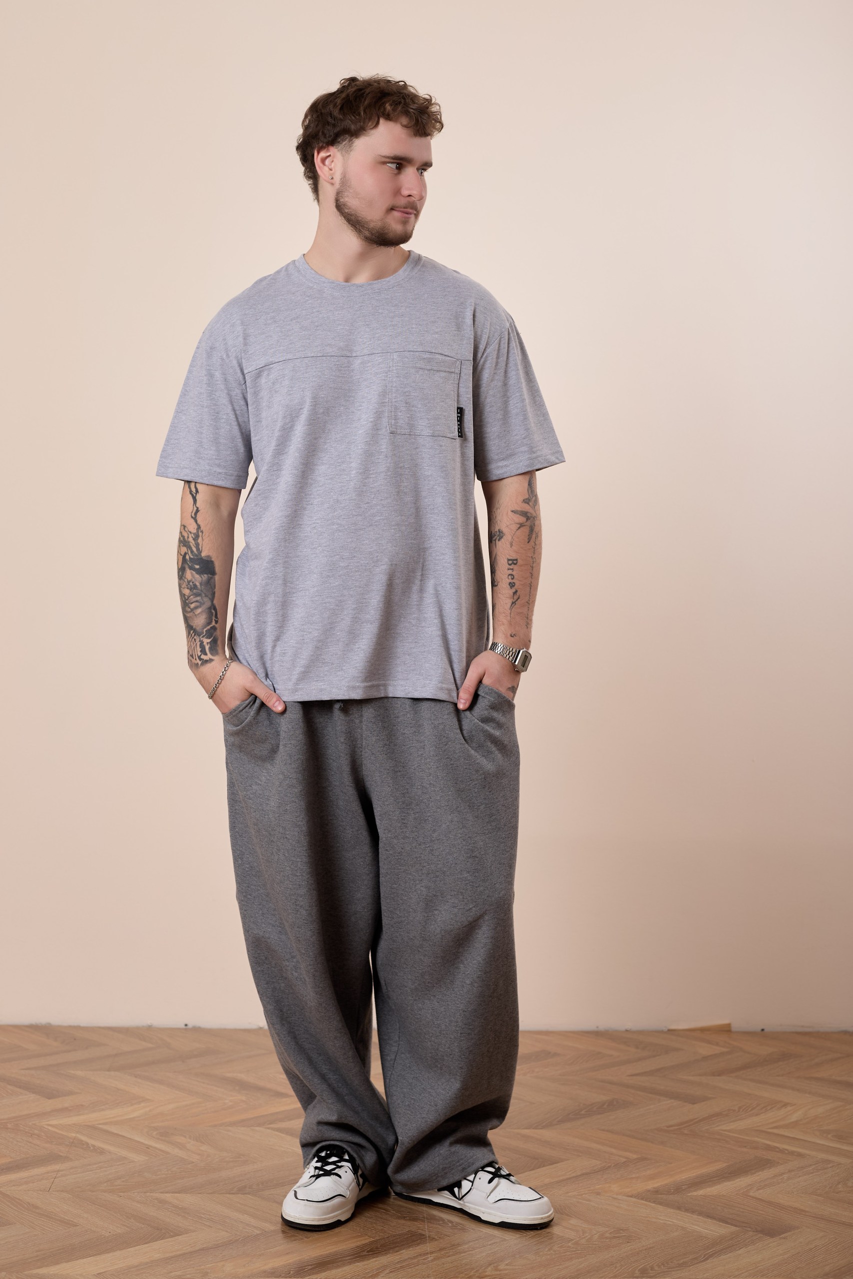 Мужская футболка выполнена из однотонной кулирки. Футболка с коротким рукавом и круглым вырезом горловины. В качестве декора с левой стороны размещен накладной карман с флажком.