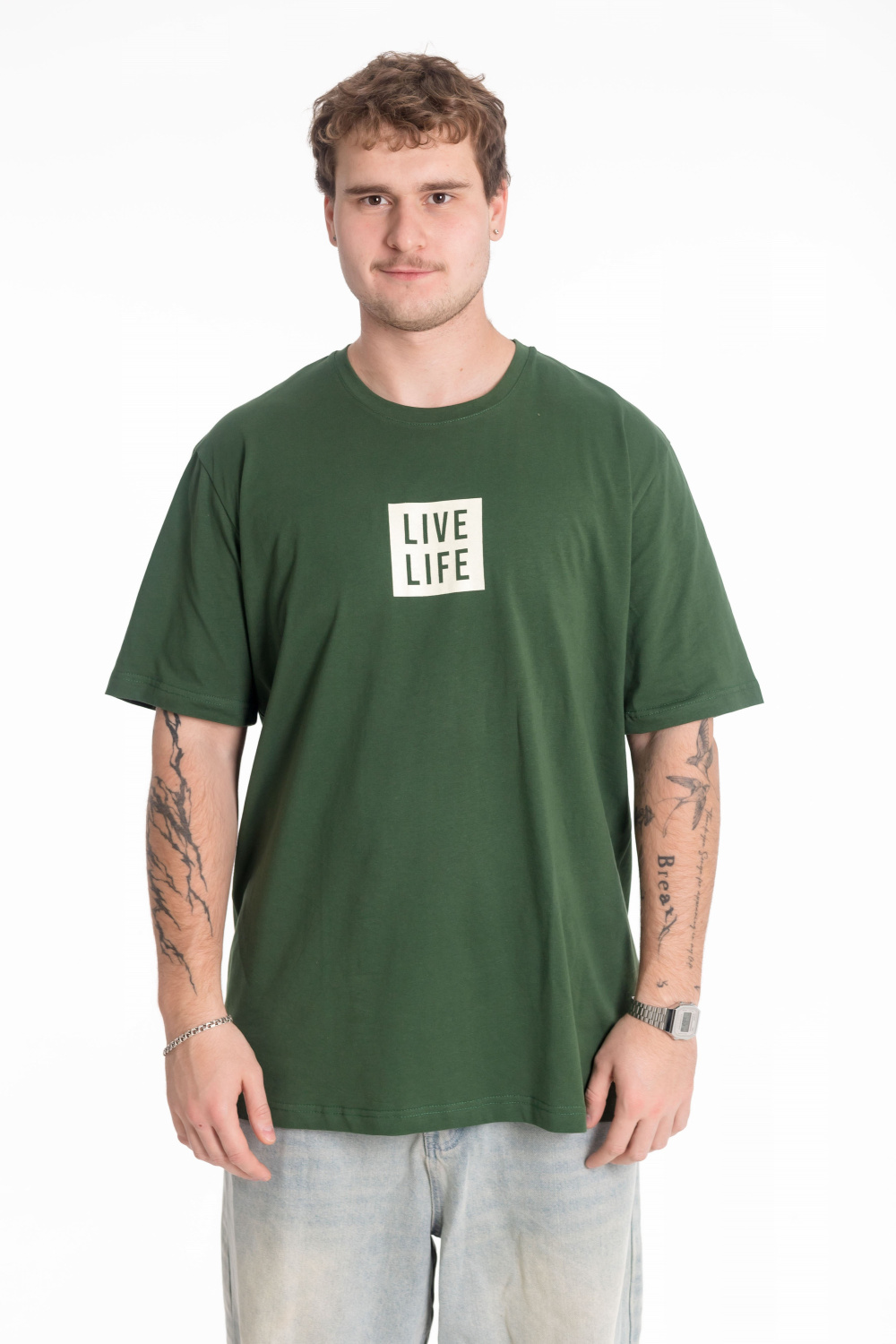 Мужская футболка с принтом спереди изготовлена из хлопкового полотна - кулирки, что обеспечивает комфорт и хорошую воздухопроницаемость. Футболка имеет короткий рукав и круглый вырез горловины. Изготовленная из натуральной ткани, футболка обеспечит комфорт в течение всего дня.