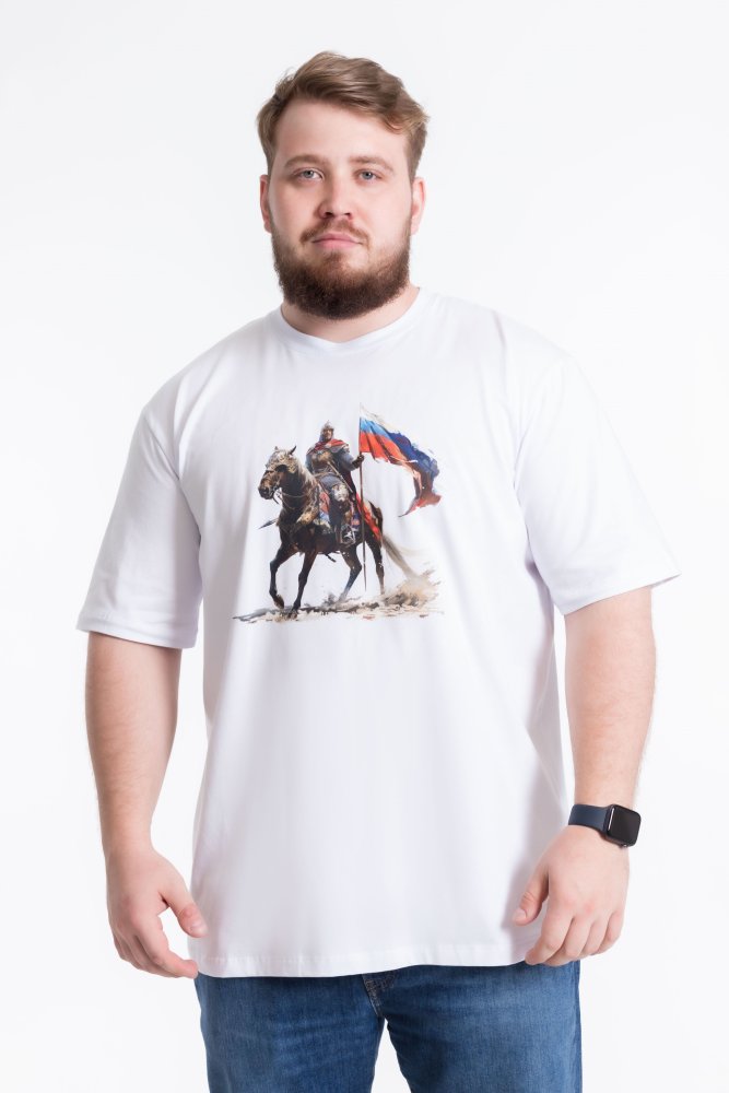 Футболка выполнена из кулирки с лайкрой с набивным рисунком. С коротким рукавом и V-образным вырезом горловины. Спереди вставка из отделочного полотна с принтом.