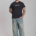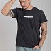 Футболка мужская, выполнена из однотонной хлопковой ткани. Свободного кроя, короткий рукав. Горловина с круглым вырезом, отделанным планкой. Спереди нанесён принт.