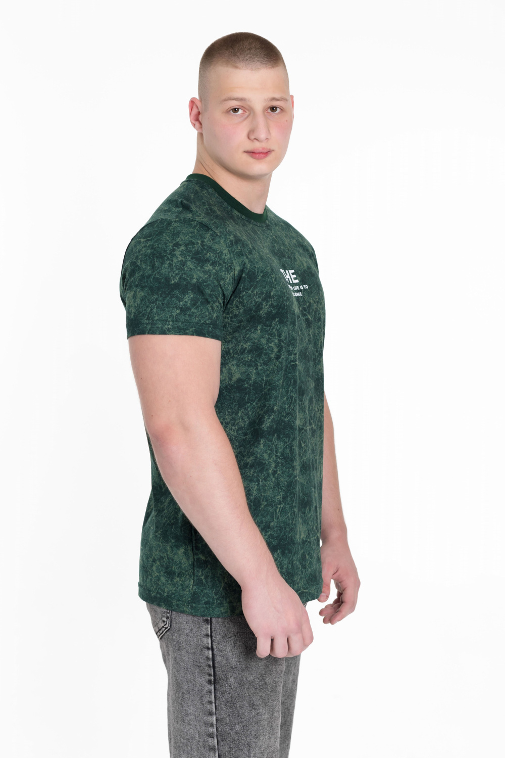 Мужская футболка из хлопкового полотна прекрасно подойдет для создания стильного и удобного образа. Футболка имеет прямой крой, короткий рукав и круглый вырез горловины, обеспечивая комфорт и свободу движений. Спереди нанесён принт.