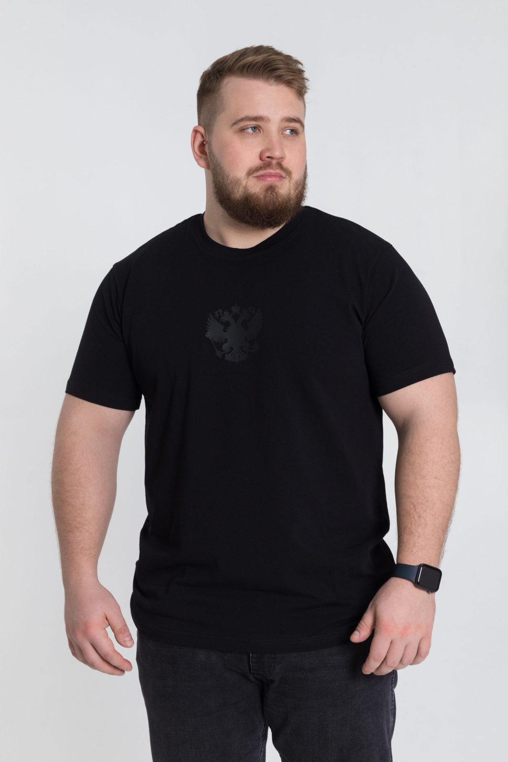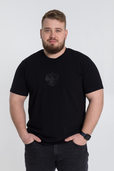 Мужская футболка выполнена из х/б полотна с лайкрой. Круглый вырез горловины, на полочке термопринт