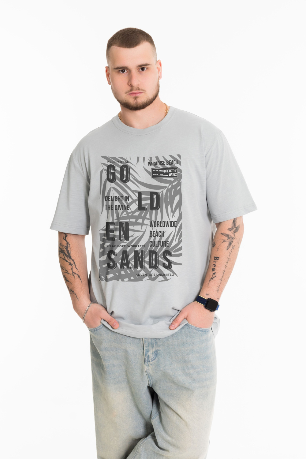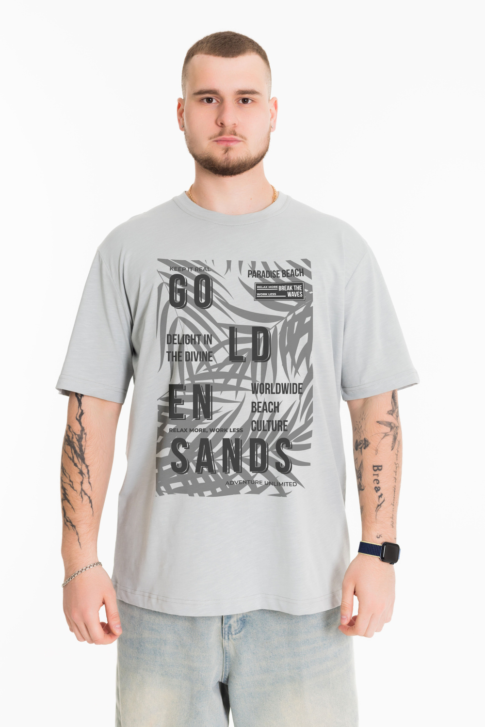 Мужская футболка с принтом спереди изготовлена из хлопкового полотна - кулирка "фламли", что обеспечивает комфорт и хорошую воздухопроницаемость. Футболка имеет короткий рукав и круглый вырез горловины. Изготовленная из натуральной ткани, футболка обеспечит комфорт в течение всего дня.