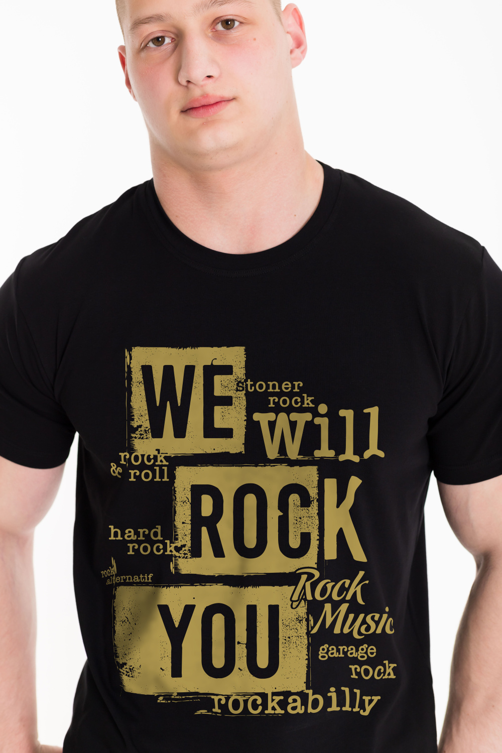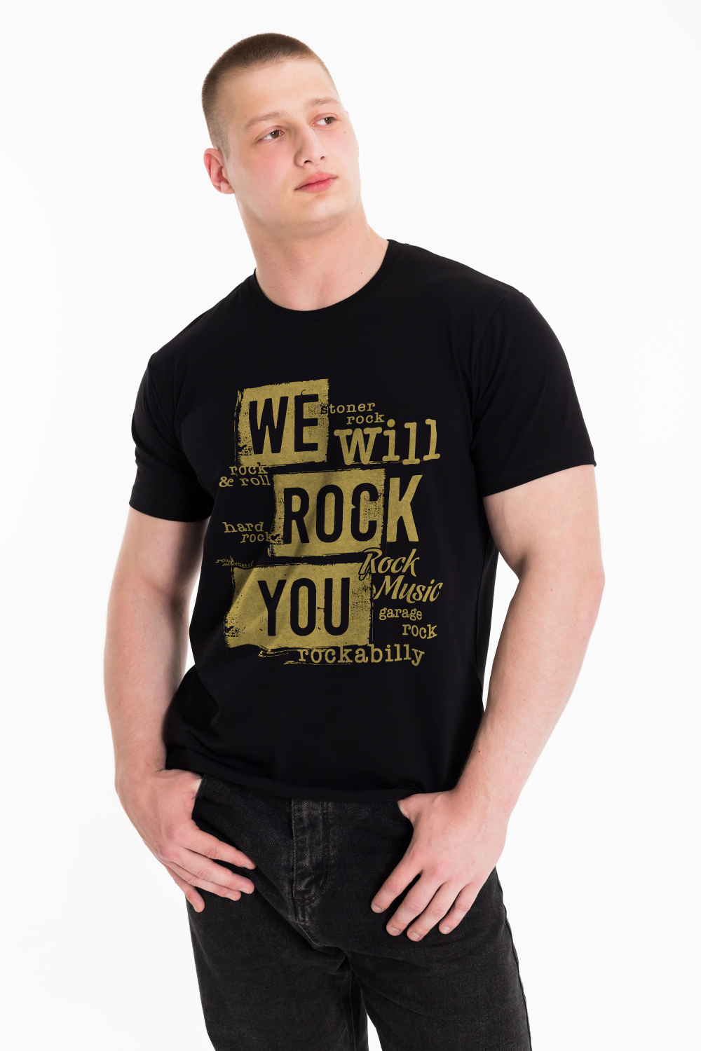 Мужская футболка с принтом выполнена из однотонного х/б полотна с лайкрой. Рукав короткий, втачной, горловина имеет круглый вырез.