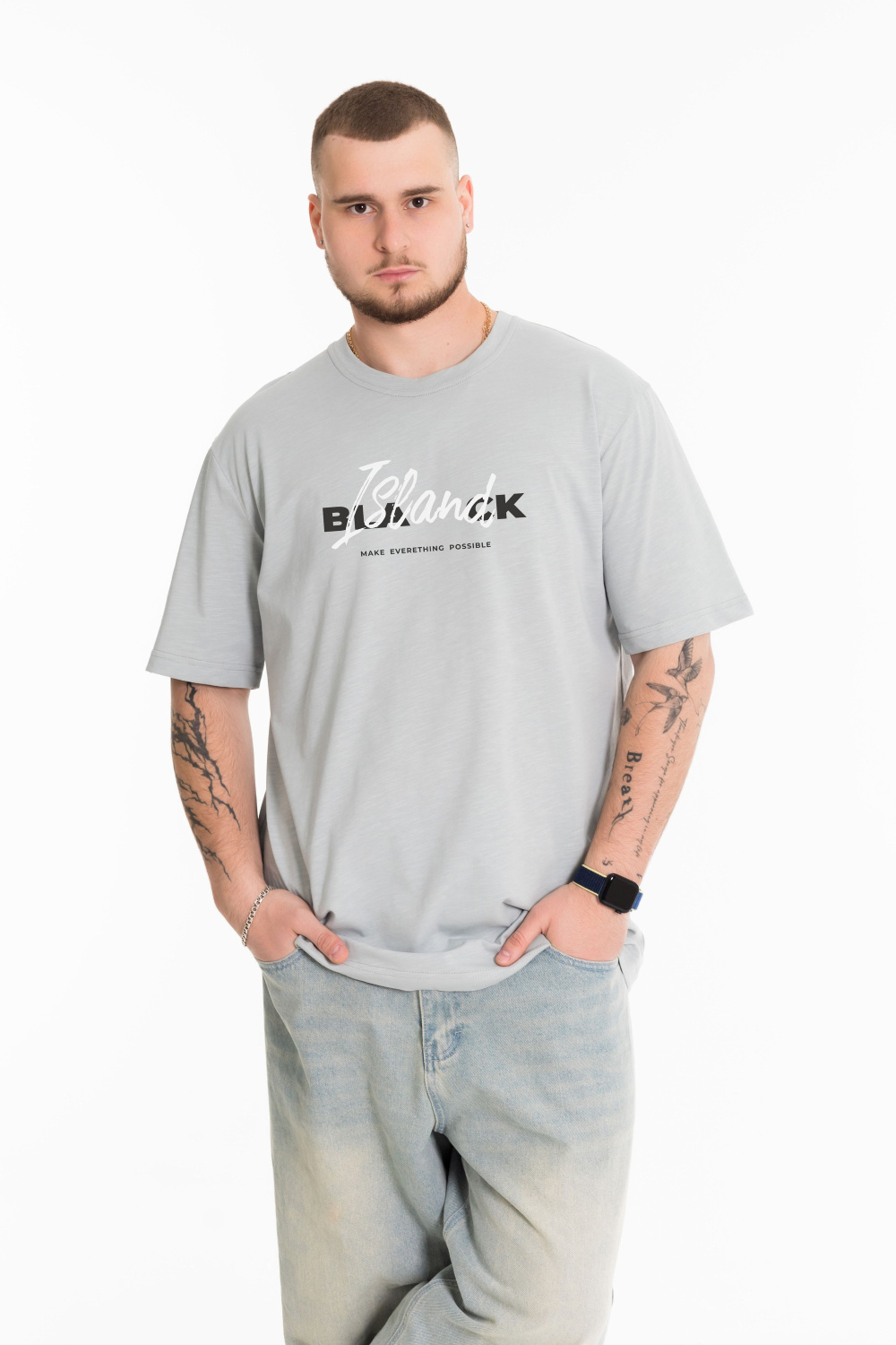Мужская футболка с принтом спереди изготовлена из хлопкового полотна - кулирка "фламли", что обеспечивает комфорт и хорошую воздухопроницаемость. Футболка имеет короткий рукав и круглый вырез горловины. Изготовленная из натуральной ткани, футболка обеспечит комфорт в течение всего дня.