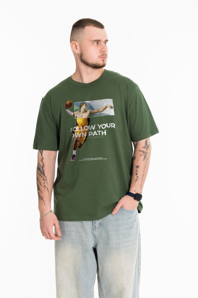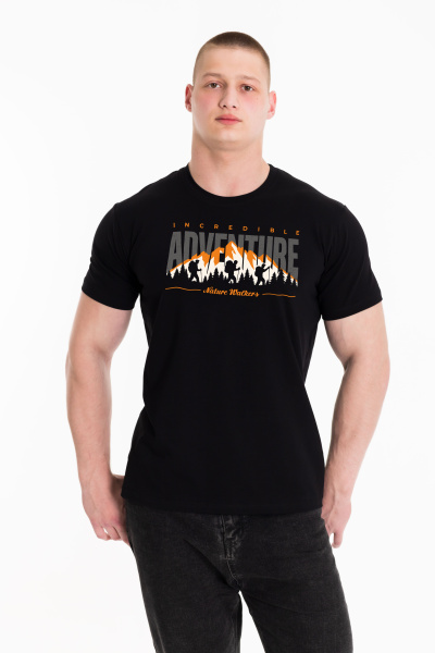 Мужская футболка с принтом спереди изготовлена из хлопкового полотна - кулирка "фламли", что обеспечивает комфорт и хорошую воздухопроницаемость. Футболка имеет короткий рукав и круглый вырез горловины. Изготовленная из натуральной ткани, футболка обеспечит комфорт в течение всего дня.