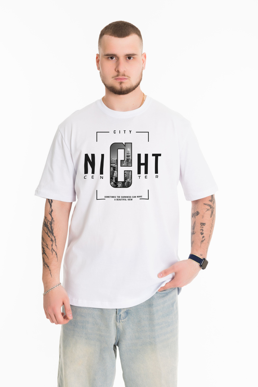 Мужская футболка с принтом, выполненная из кулирки в однотонном белом цвете станет универсальным элементом гардероба. Она имеет прямой крой, втачной рукав и круглый вырез горловины, что делает ее комфортной и подходящей для повседневной носки. Футболка выполнена из качественного материала, который приятен на ощупь и обеспечивает хорошую вентиляцию. Белый цвет легко сочетается с различной одеждой, что позволяет создавать разнообразные образы. Эта классическая футболка подойдет как для занятий спортом, так и для прогулок или повседневного использования. Простота и стиль в одном предмете одежды делают ее отличным выбором для любого мужчины.
