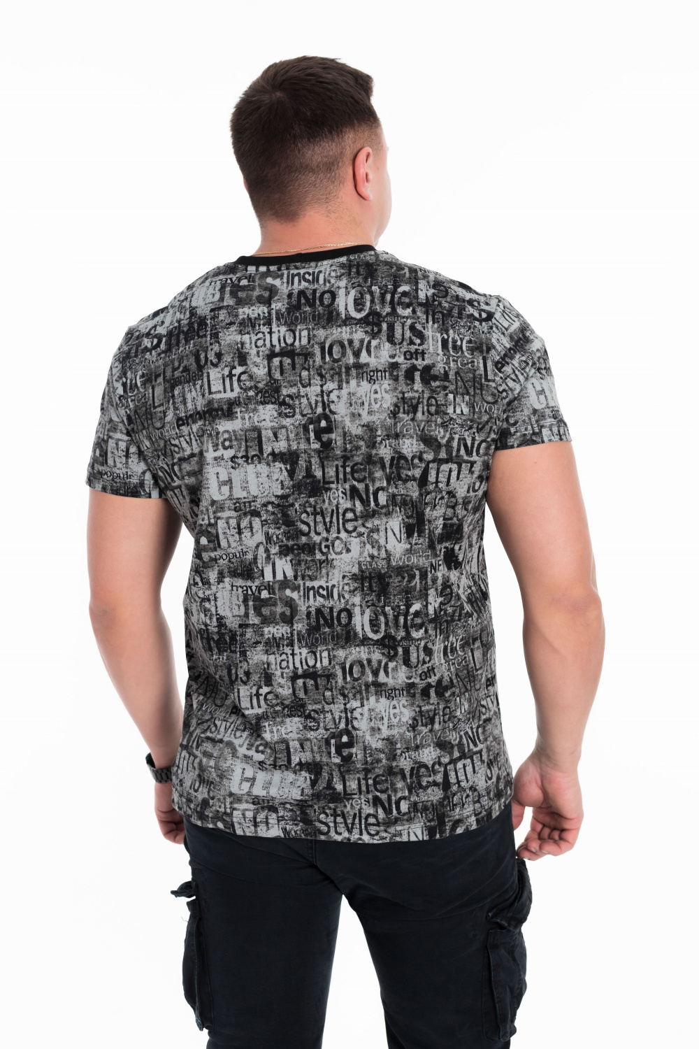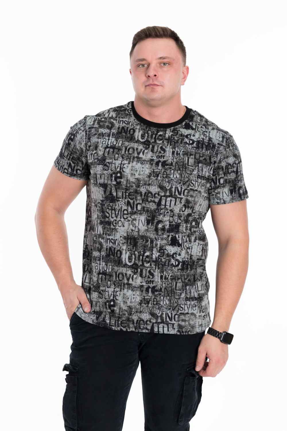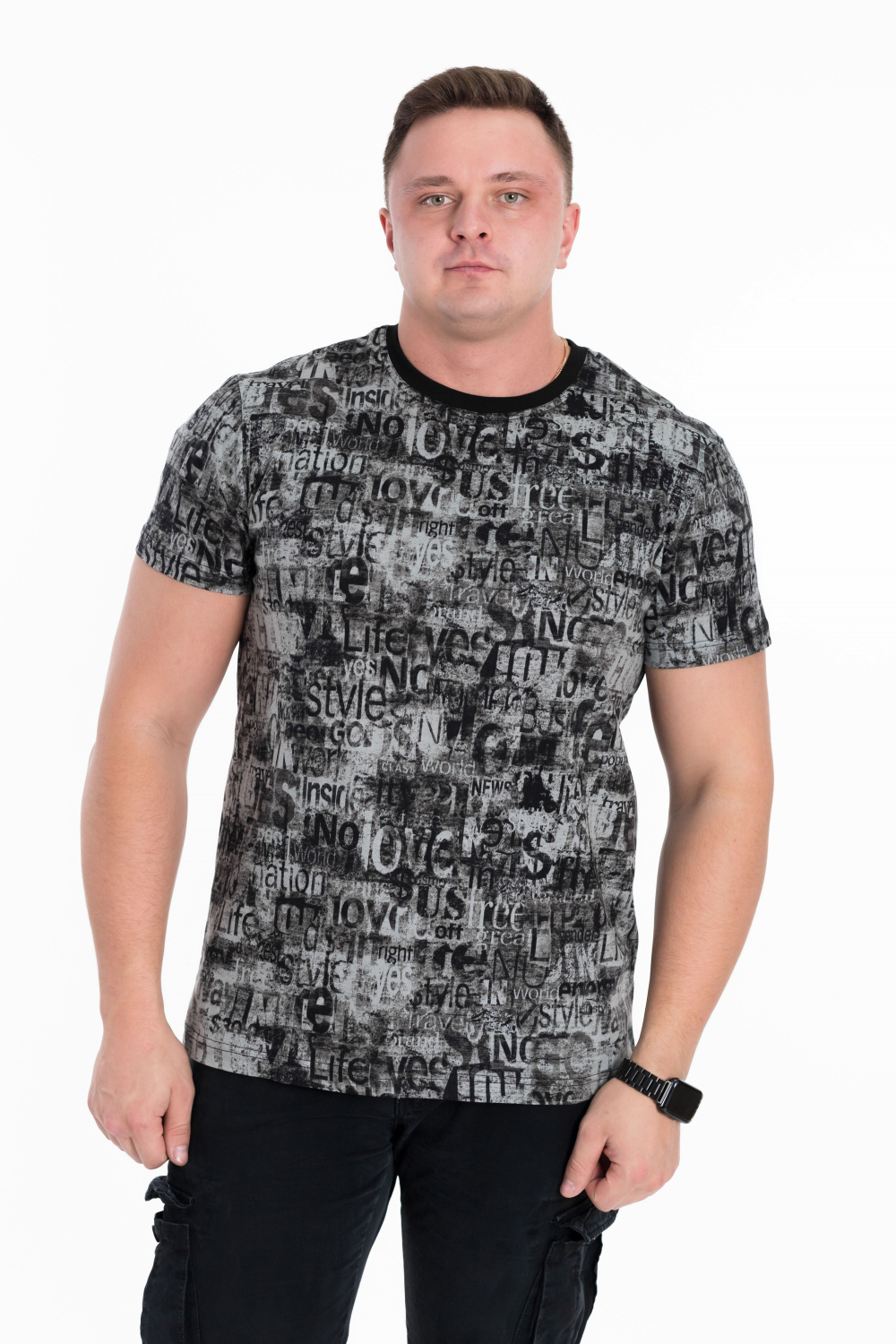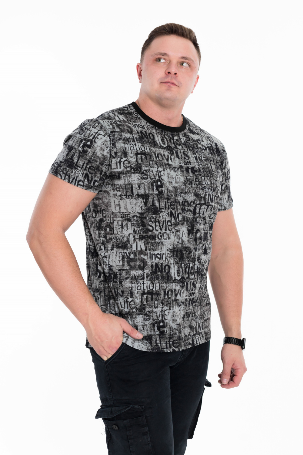 Мужская футболка выполнена из хлопкового полотна с набивным рисунком. Горловина с круглым вырезом.