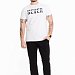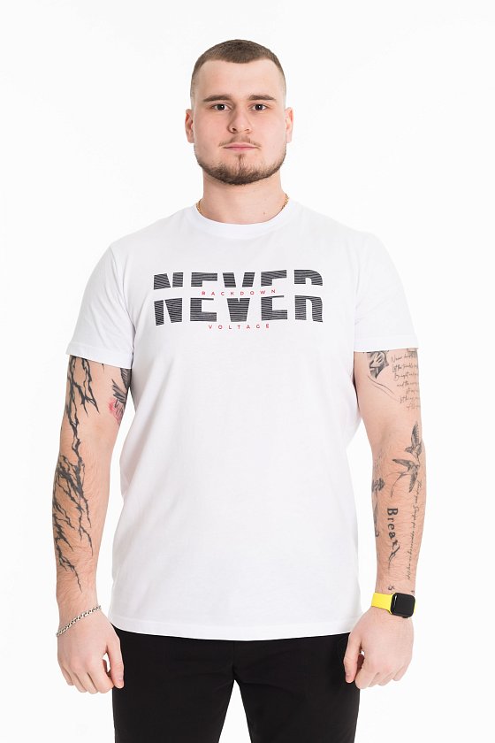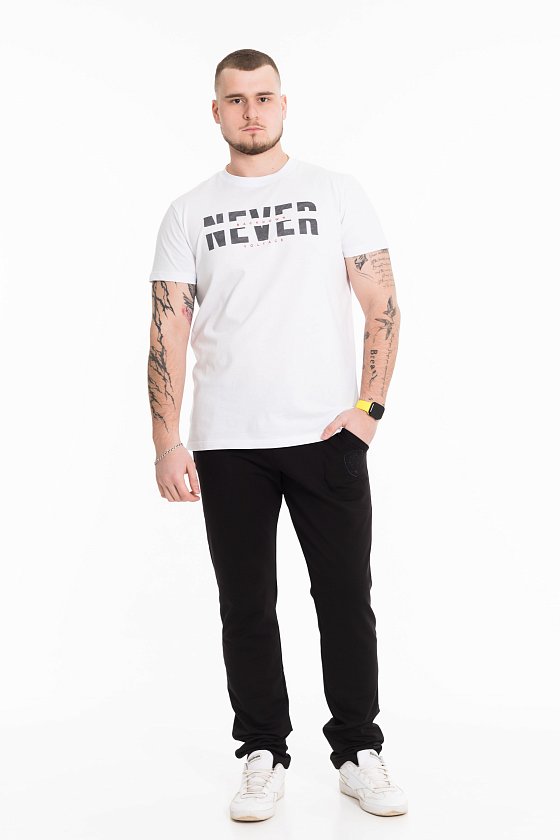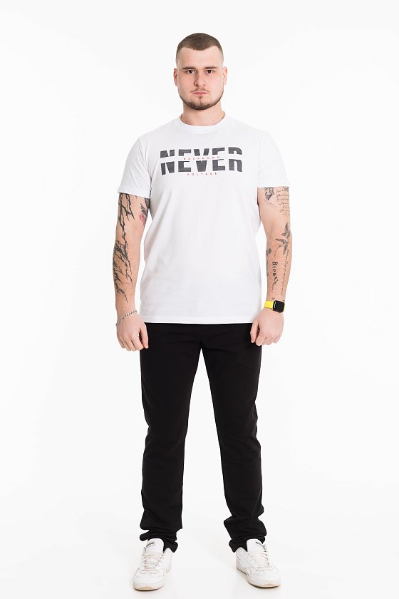 Мужская футболка выполнена из хлопкового полотна. Горловина имеет круглый вырез, спереди нанесён принт.