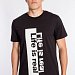 Футболка свободного силуэта из однотонного х/б полотна. Футболка с коротким рукавом, планка круглого выреза горловины выполнена из рибаны. Спереди нанесён принт.