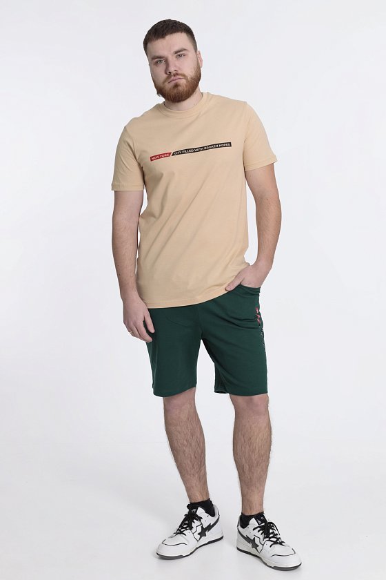 Мужской костюм — отличный выбор для повседневной носки. Он изготовлен из мягкого и приятного к телу трикотажного хлопкового полотна, состоящего из двух разных материалов: футболки из кулирки и шорт из футера.