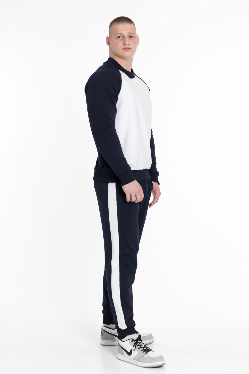 Мужской костюм из футера петли состоит из брюк и толстовки, которые прекрасно сочетаются и создают стильный образ.