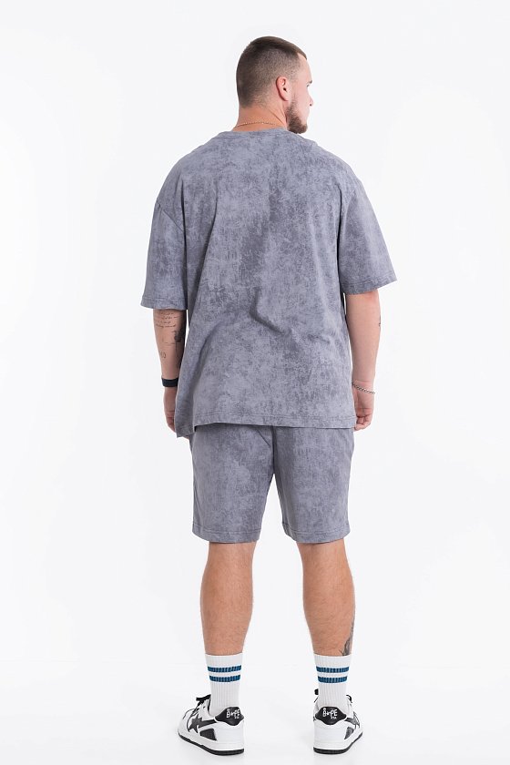 Мужской костюм — отличный выбор для повседневной носки. Он состоит из футболки и шорт, выполненных из качественного хлопкового полотна однотонного серого цвета, что обеспечивает комфорт и удобство в носке.