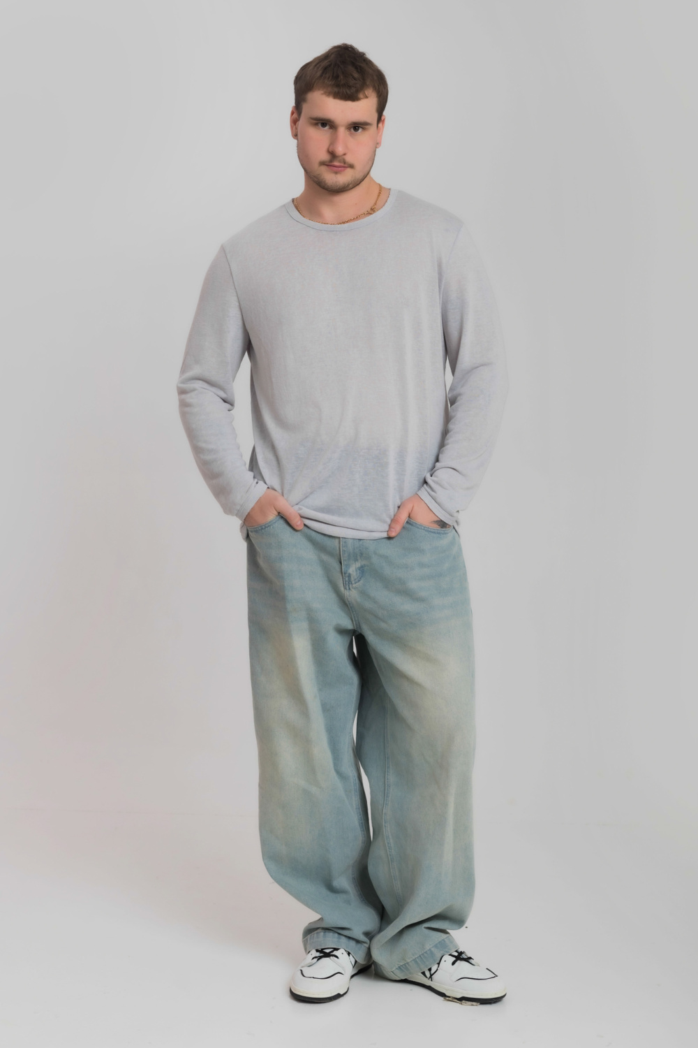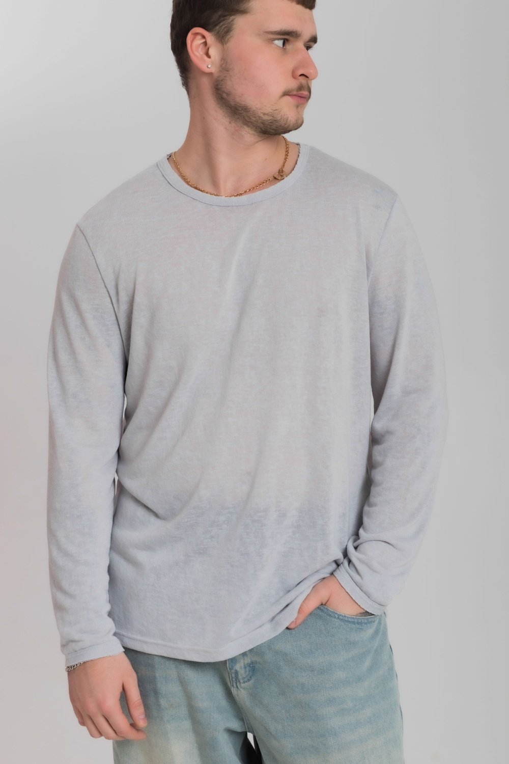 Лонгслив из однотонной кулирки Фламли. Горловина