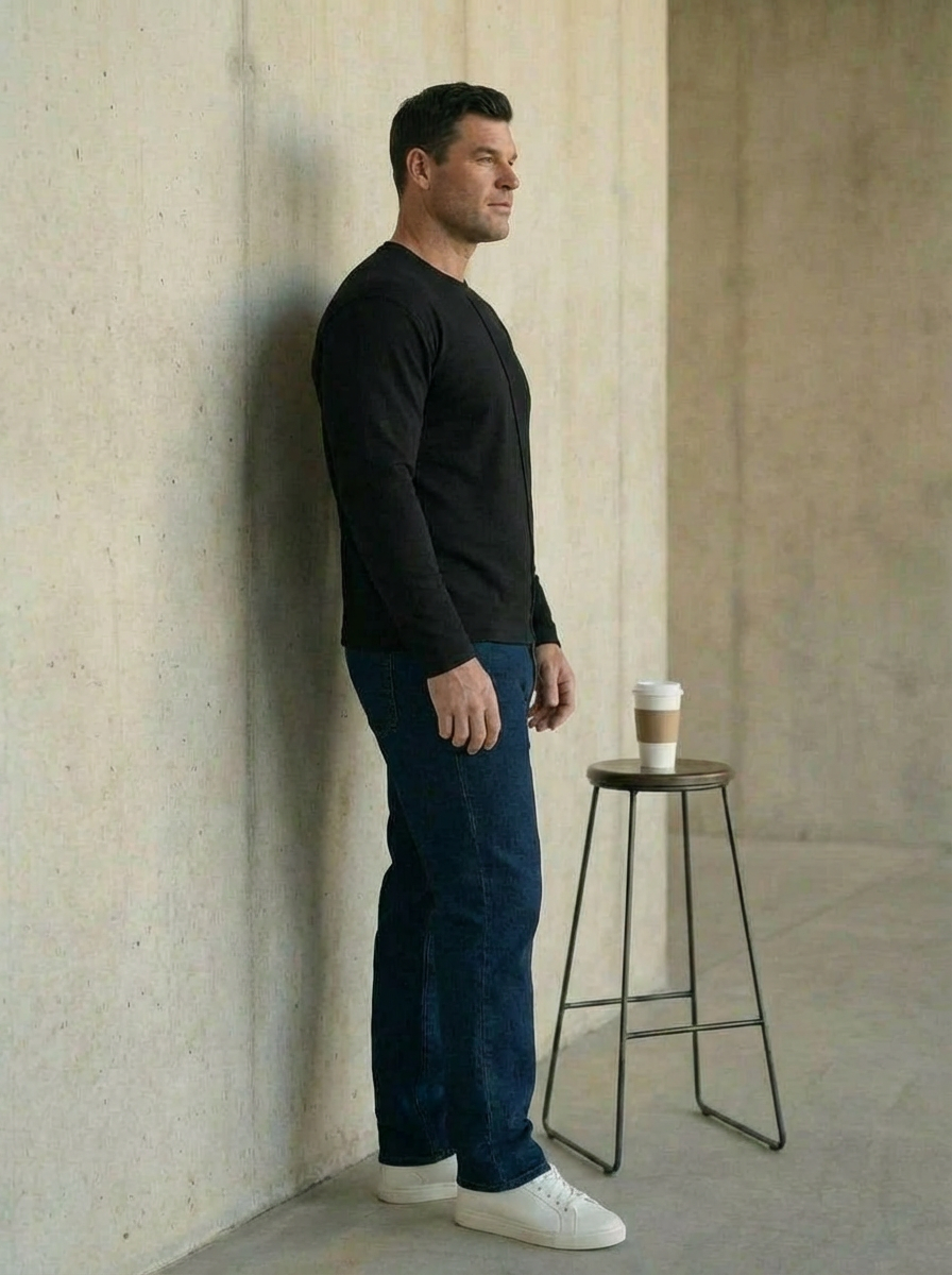 Мужской лонгслив выполнен из однотонной кулирки с лайкрой. Модель имеет спущенное плечо и декоративный шов спереди, выполненный “налицо”. Низ рукавов и планка горловины оставлены с открытым срезом — края слегка закручиваются, создавая аккуратный декоративный эффект. Лонгслив комфортный в носке, мягко прилегает и подходит для повседневного использования.