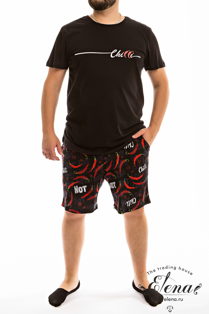 Комплект выполнен из кулирки, 100% хлопок. Футболка с коротким рукавом и круглым вырезом горловины. Спереди на футболке нанесён принт. Шорты с карманами по бокам и поясом на резине.