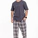 Мужская пижама из хлопкового полотна - практичный и удобный комплект для сна и домашнего отдыха. Футболка прямого кроя с втачным рукавом обеспечивает комфортную посадку и свободу движений. Спереди расположен стильный принт, который добавляет образу выразительности. Брюки прямого силуэта, с поясом на мягкой резинке и удобными карманами в боковых швах — всё для комфорта в повседневной носке.