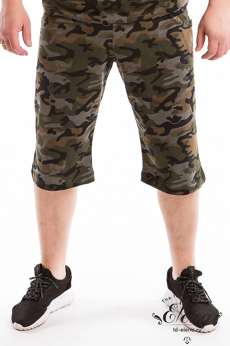 Капри мужские выполнены из хлопкового полотна с набивным рисунком. Прямого свободного кроя, с двумя карманами по бокам. Пояс на резинке.