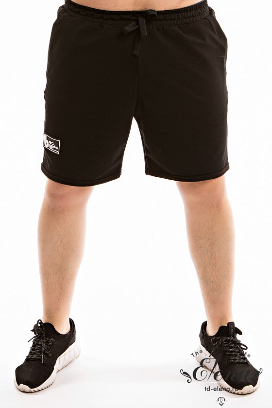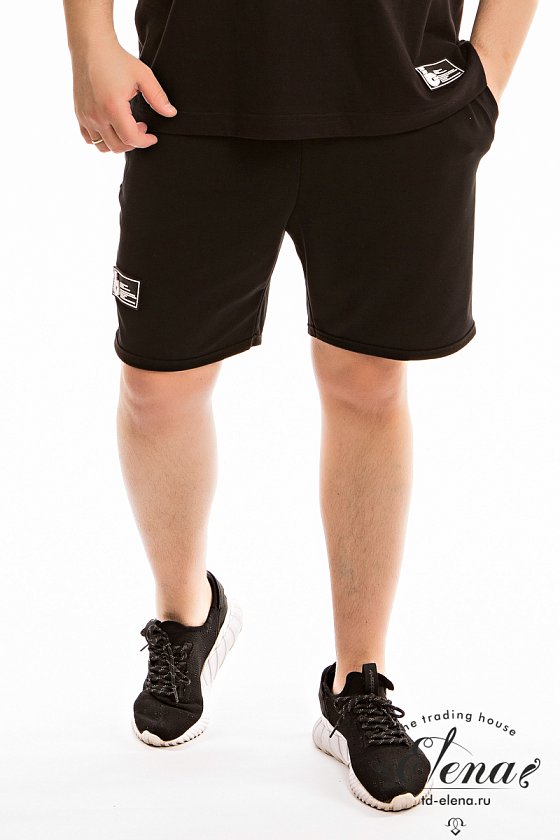 Шорты из однотонной футер петли с лайкрой. С боковыми карманами и притачным поясом на резине и шнуре. Шорты с нашивкой спереди.