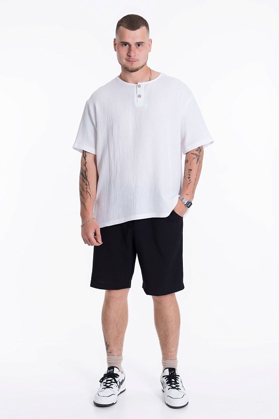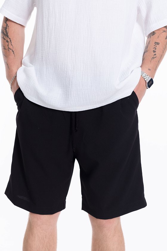 Шорты из полотна "искусственный лен" - пояс на резинке, боковые карманы, свободный крой.