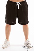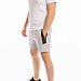 Шорты из футер петли с лайкрой. По бокам расположены карманы, также есть один накладной карман сзади. В поясе проложена резина и яркий шнур. Молнии на карманах и шнур в поясе создают яркий акцент.