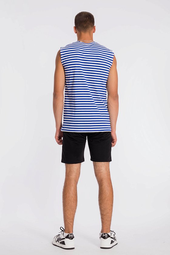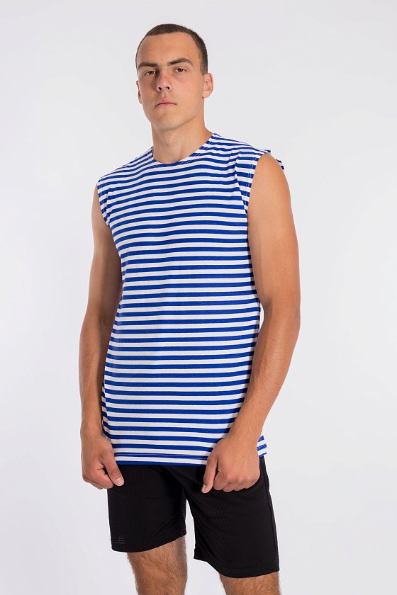 Подтельняшка мужская (полоска) выполнена из стопроцентного хлопкового полотна. Прямого кроя, горловина c круглым вырезом, плечики широкие.