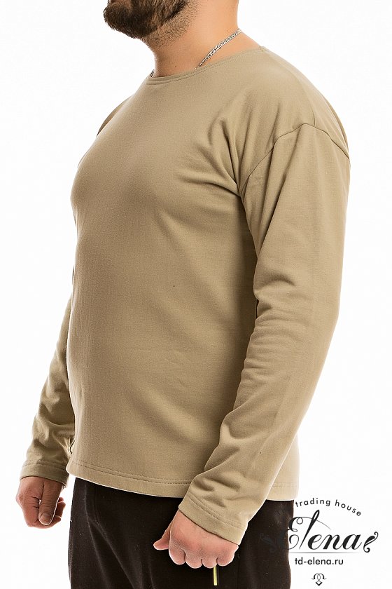 Тельняшка мужская выполнена из однотонного полотна с начёсом. Покрой свободный, горловина с круглым вырезом, длинный рукав.