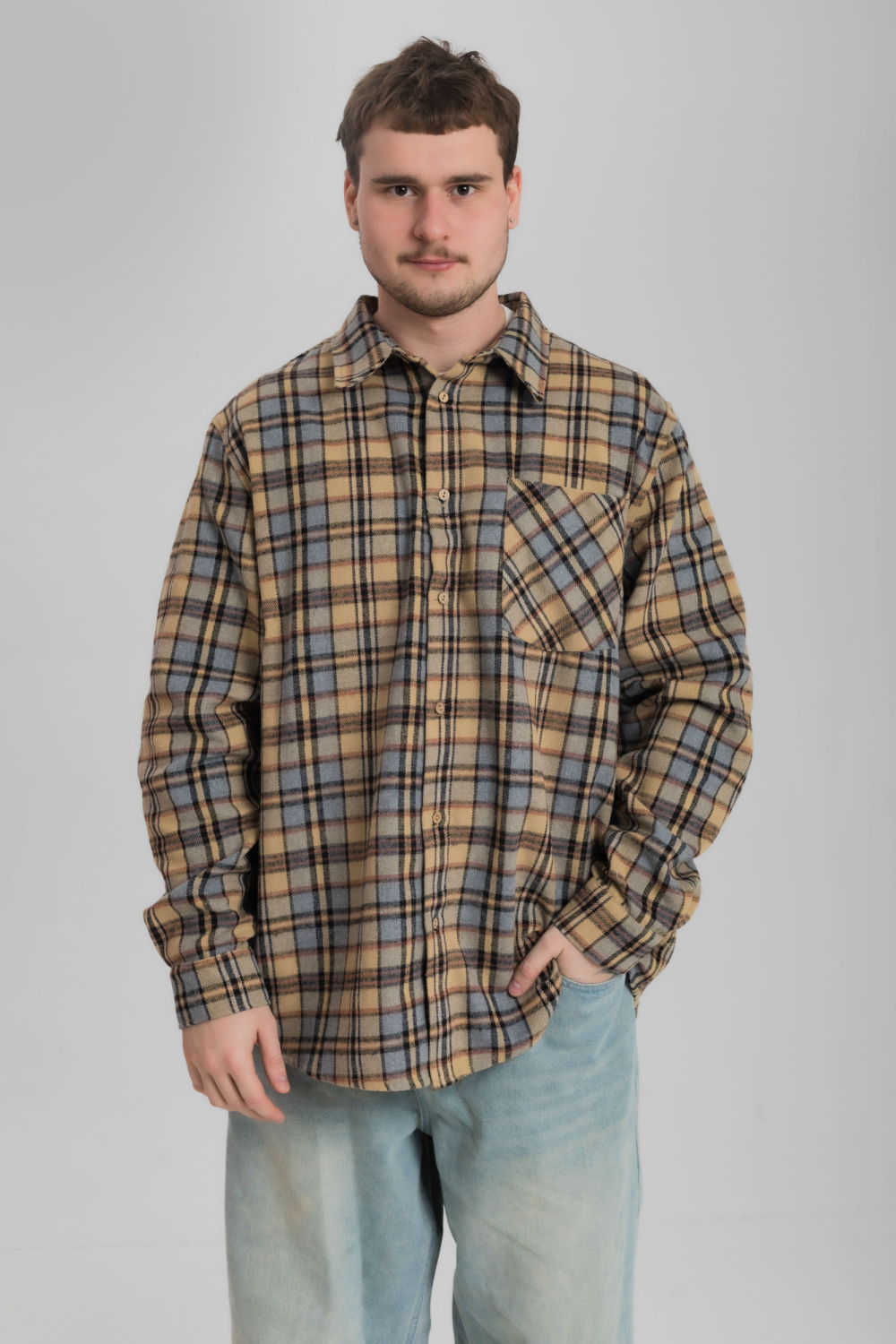Мужская рубашка с длинным рукавом выполненная из полотна "рубашечный шерон" и застёжкой на пуговицы — отличный выбор для вашего гардероба. Обеспечивает свободу движений, комфорт и аккуратный внешний вид. Воротник и нагрудный карман придают изделию стильный акцент.