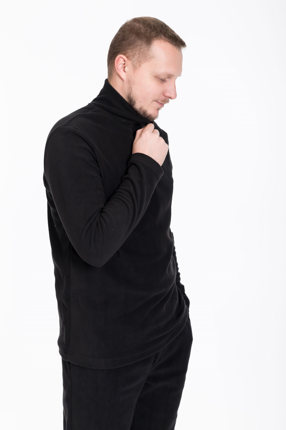 Толстовка из однотонного флиса черного цвета идеально подходит для холодной погоды, сочетая комфорт и практичность с современным стилем.
