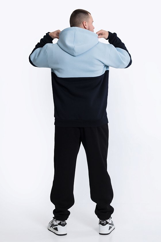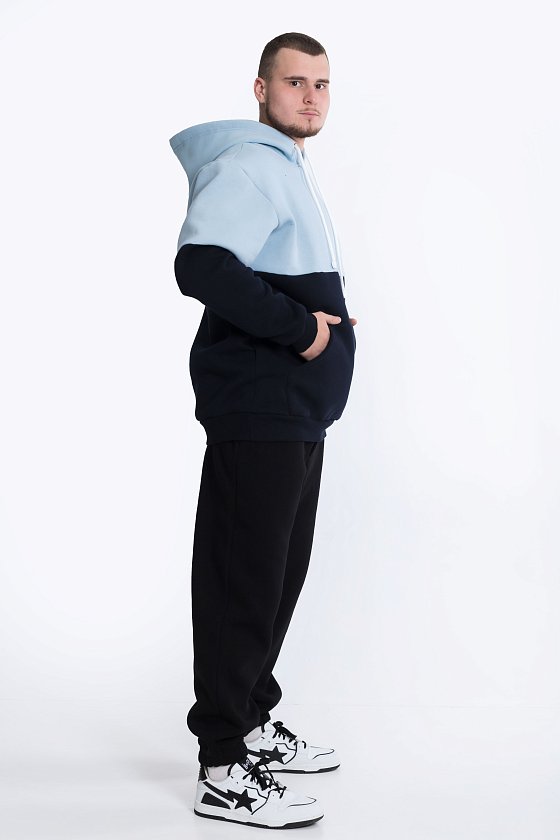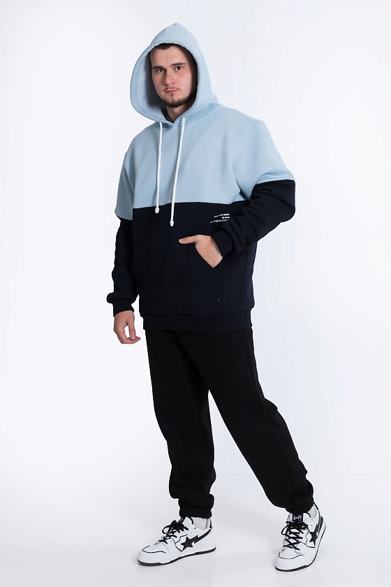 Представляем тёплую толстовку из футера 3-х нитки с начёсом в двухцветном исполнении: сероголубой и чёрный.