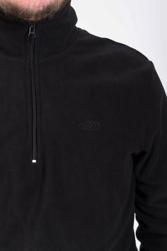 Толстовка из однотонного флиса черного цвета идеально подходит для холодной погоды, сочетая комфорт и практичность с современным стилем.