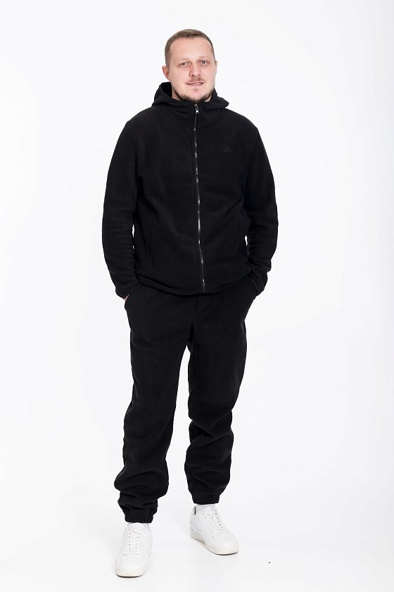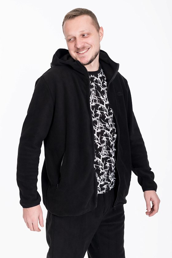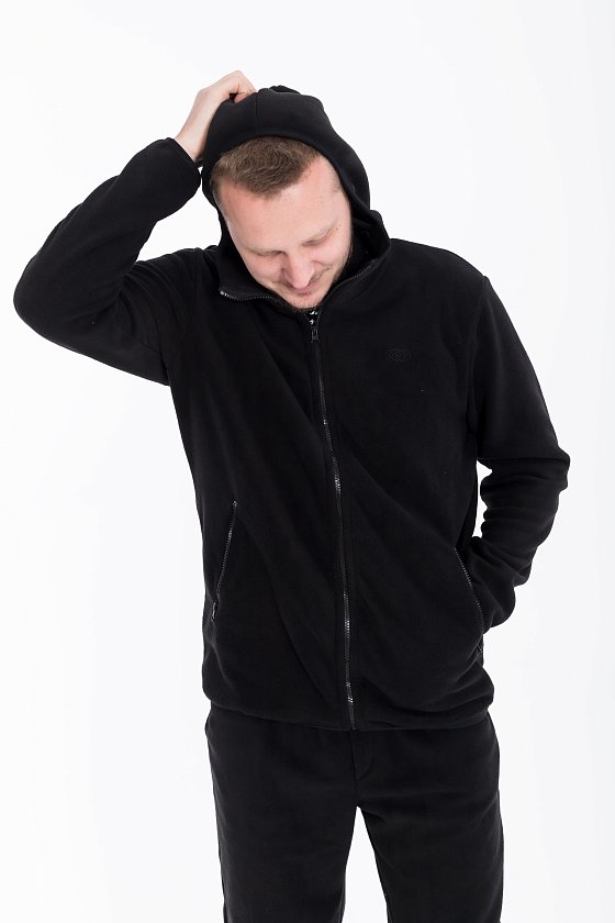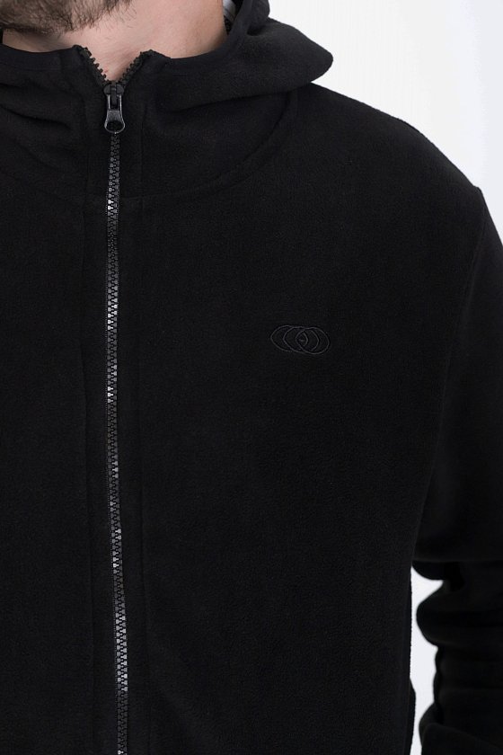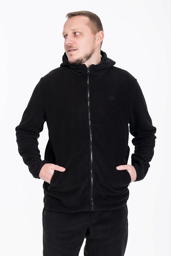 Мужская толстовка из поларофлиса — идеальный выбор для холодного времени года благодаря своим теплоизоляционным свойствам. Черный цвет и прямой крой делают её универсальной и подходящей для различных стилей и случаев. Воротник-стоечка вместе с капюшоном обеспечивают дополнительную защиту от ветра и непогоды.