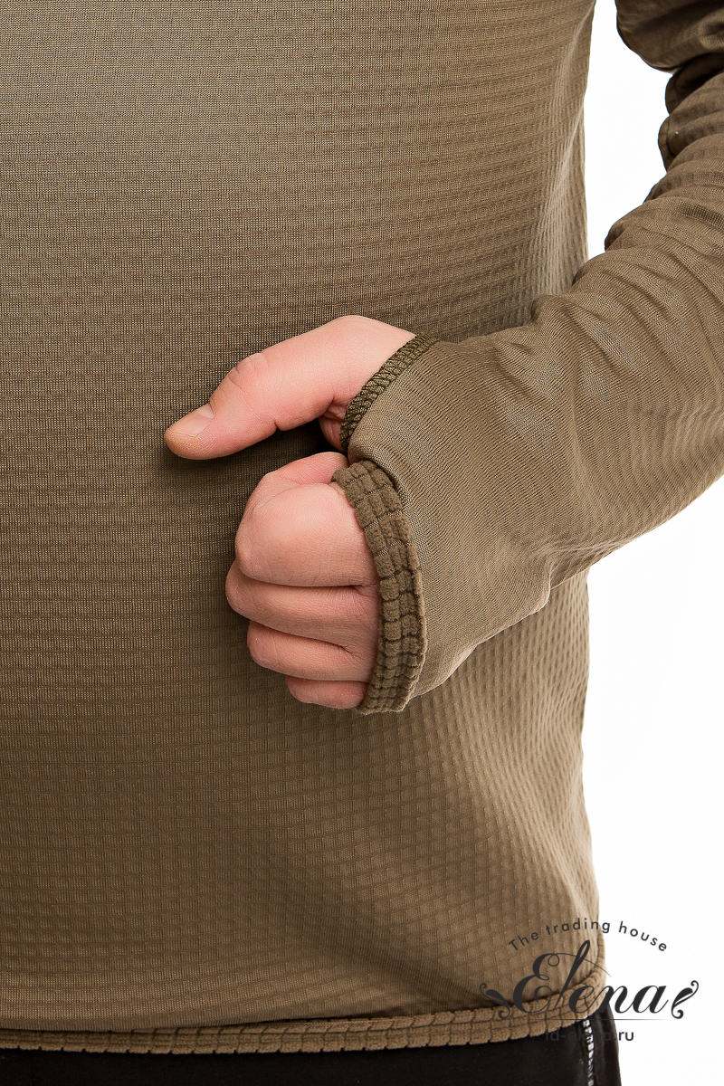 С длинным втачным рукавом с отверстием для пальца, толстовка обеспечивает дополнительную защиту от холода и ветра. Отверстие для пальца позволяет фиксировать рукав на руке, что удобно при активных движениях.