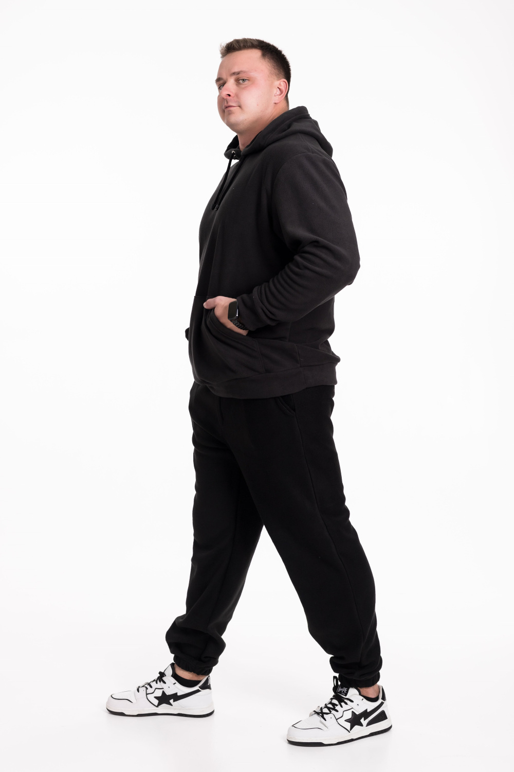 Ищете удобную и тёплую толстовку для активного отдыха или повседневной носки? Тогда обратите внимание на нашу модель из флиса. Однотонный материал обеспечивает мягкость и сохраняет тепло, а карман-кенгуру позволяет удобно хранить мелочи. Манжеты на рукавах и линия плеча, которая немного спущена, обеспечивают комфортную посадку. Капюшон со шнуром можно регулировать по размеру, чтобы защитить голову от ветра и холода.