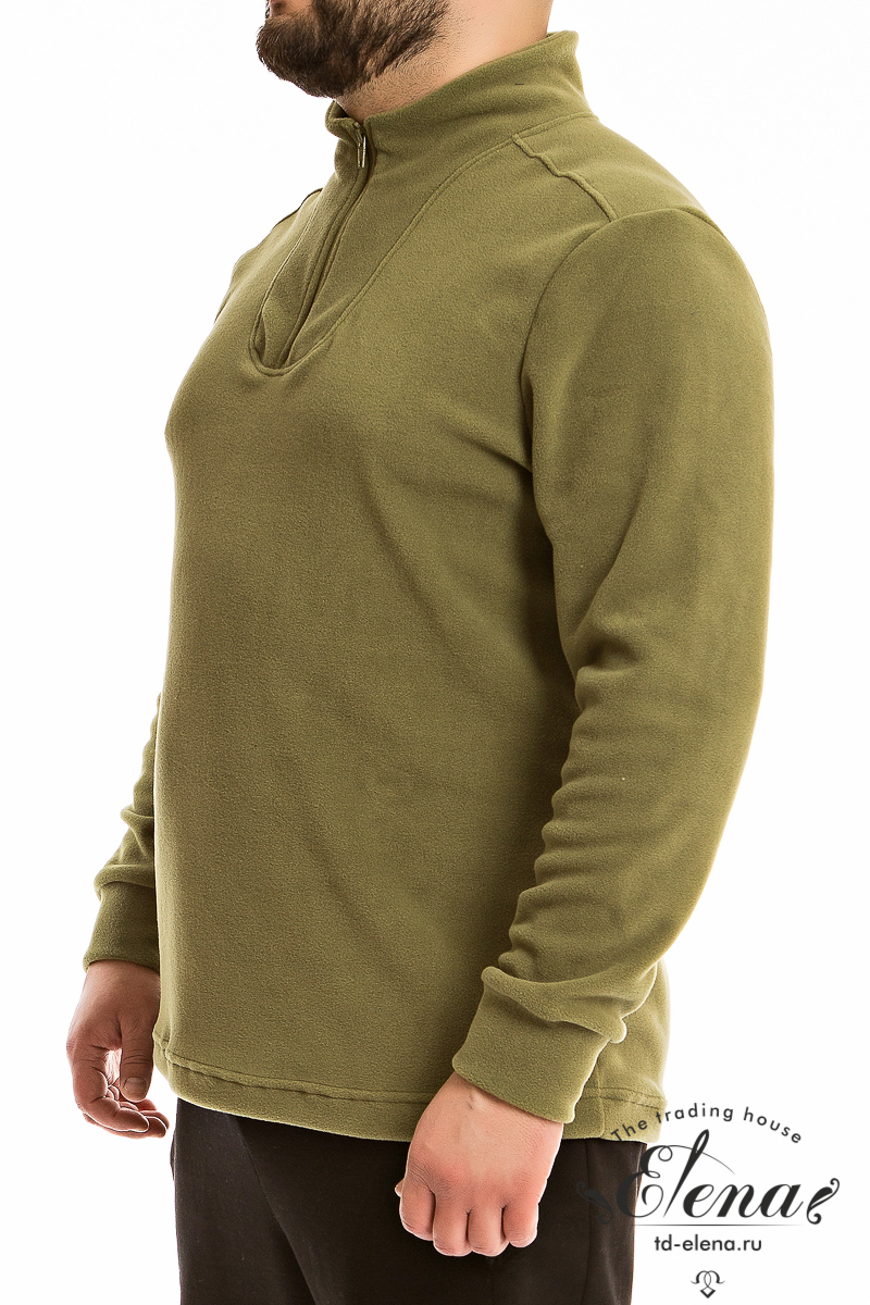 Мужская толстовка из флиса с воротником-стойкой, втачными рукавами с манжетами и короткой застежкой на молнию.