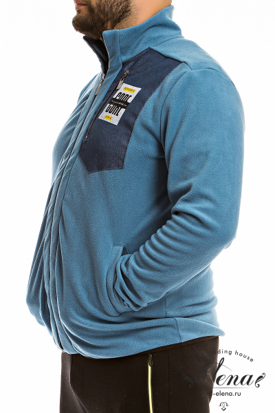 Толстовка из флиса с застёжкой на молнию. С воротником стойкой, втачными рукавами и карманами по бокам. Слева накладной карман из отделочного полотна с молнией. На кармане нанесён принт. Низ рукавов и изделия окантован декоративной резинкой.