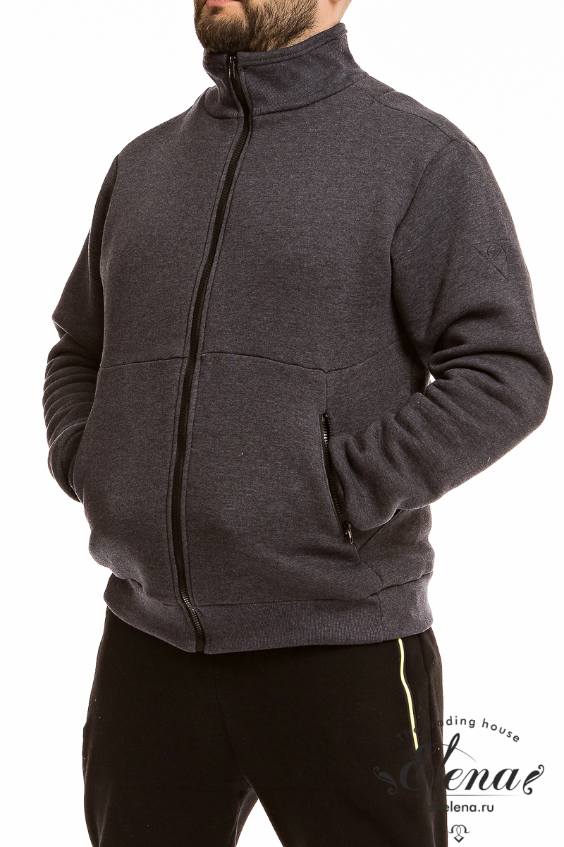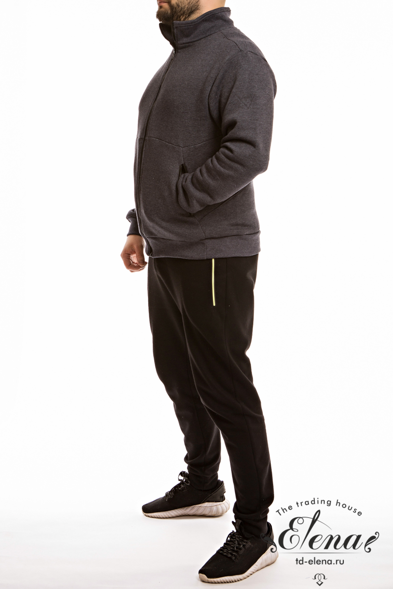 Толстовка выполнена из полотна с начёсом. Спереди застёгивается на молнию. Воротник, манжеты и пояс выполнены из кашкорсе. По бокам размещены карманы на молнии, на рукаве вышивка.