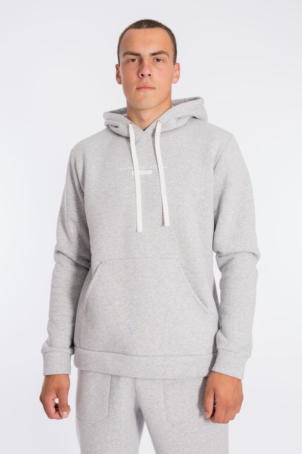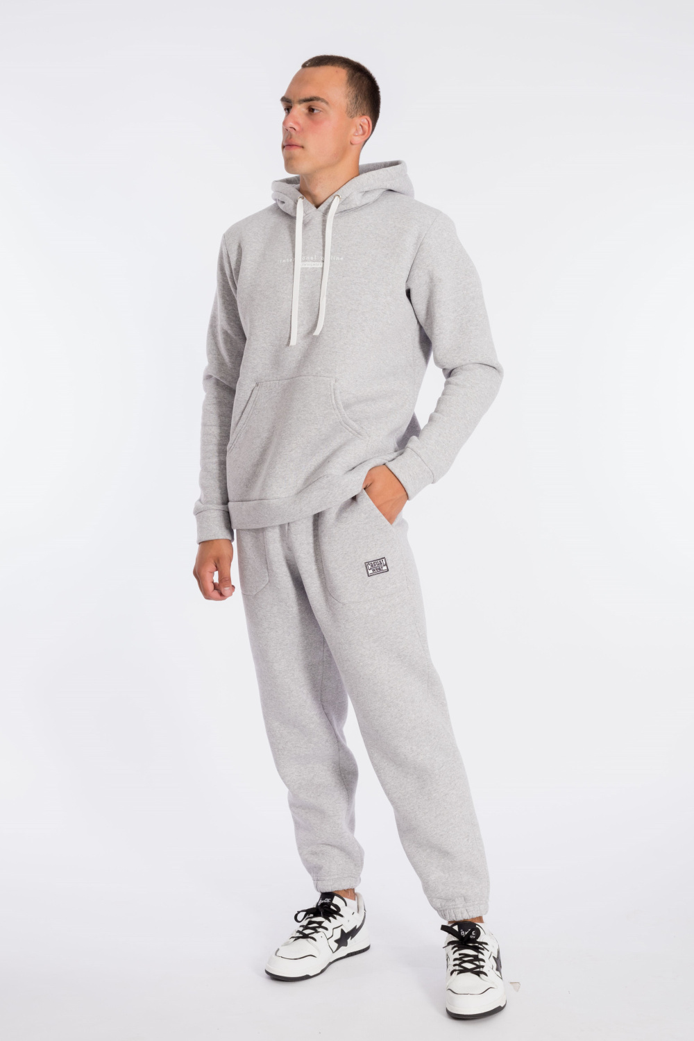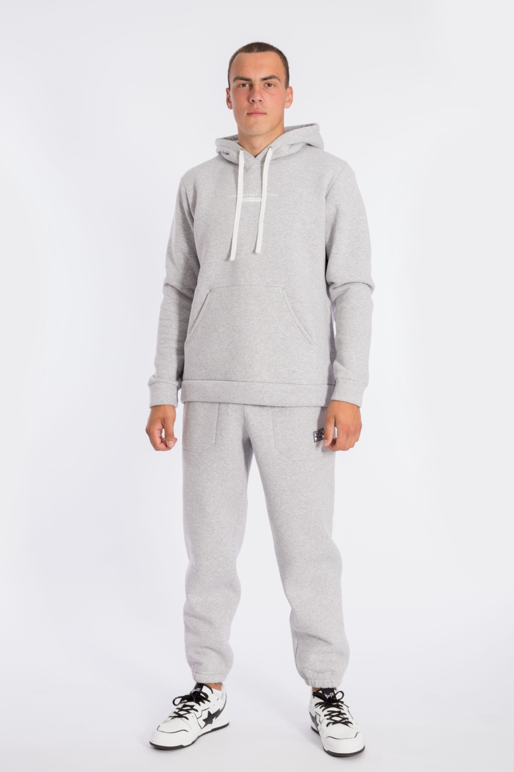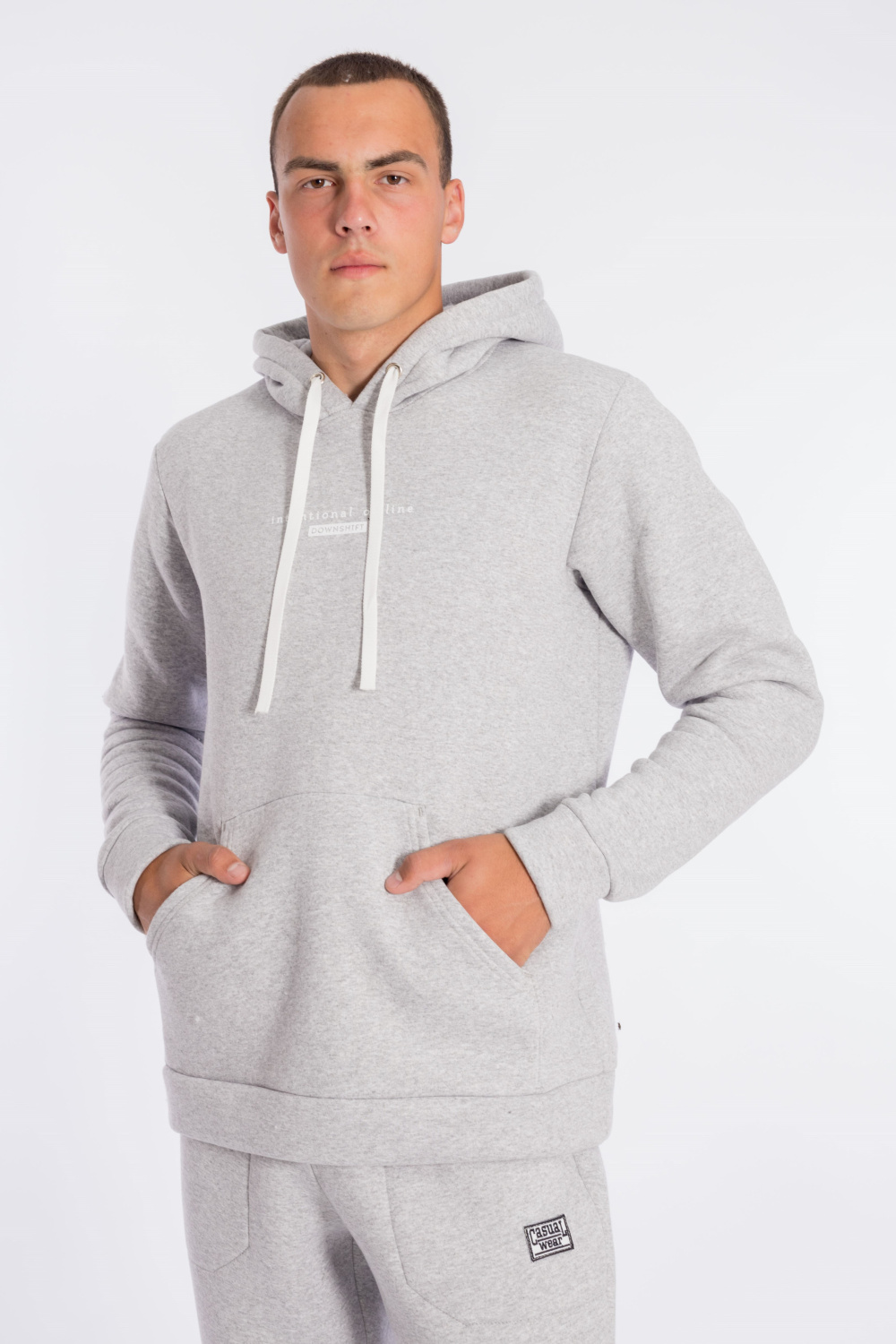 Мужская толстовка выполнена из футера с начесом (трёхнитка). Толстовка с капюшоном со шнуром и длинными рукавами. Спереди нанесён принт и расположен карман-кенгуру. Манжеты рукавов и притачной низ изделия из основного полотна.