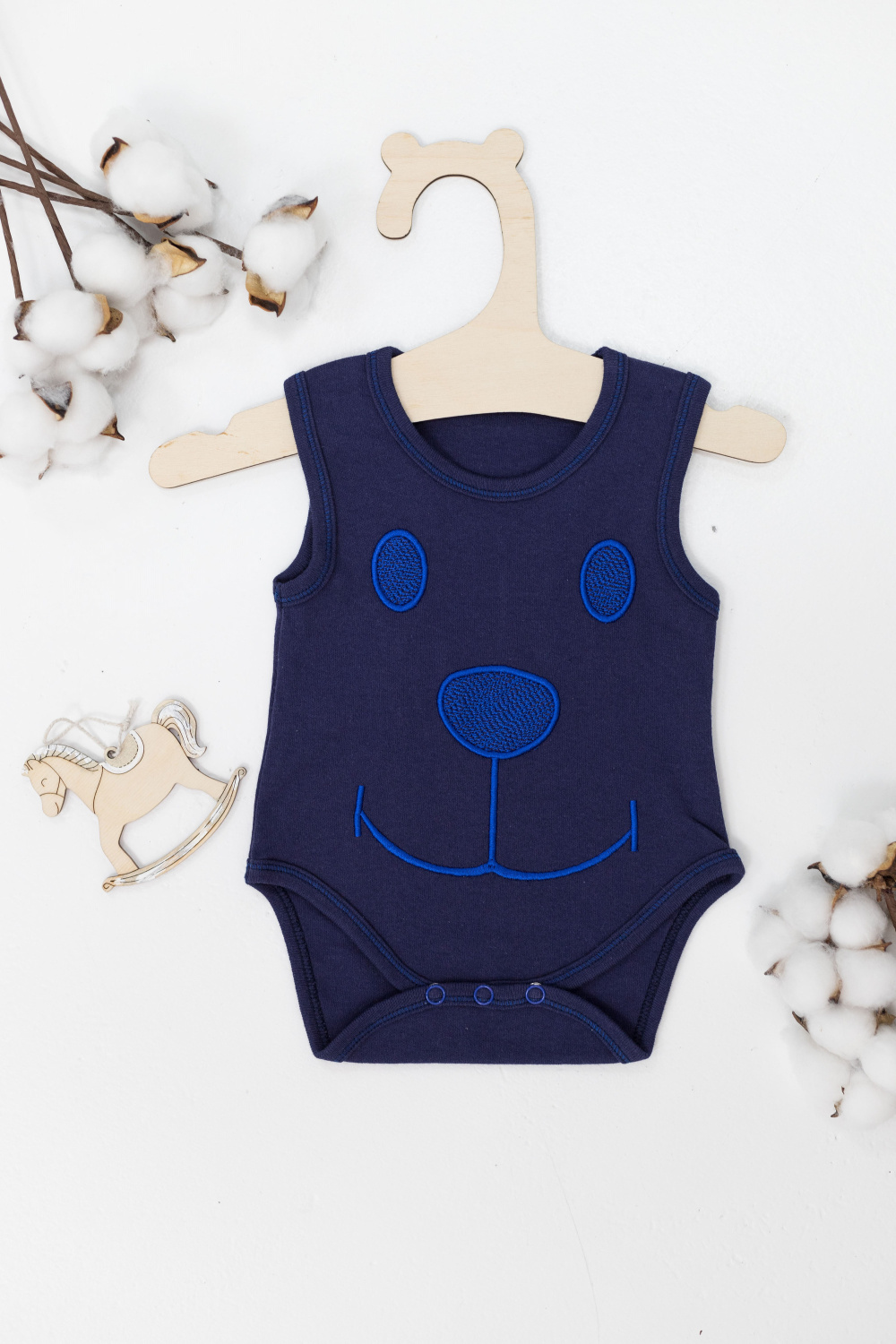 Боди для малышей из 100% хлопкового полотна. Без рукавов, спереди с вышивкой, внизу застёжка на кнопки.