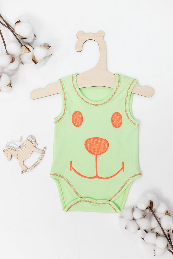Боди для малышей из 100% хлопкового полотна. Без рукавов, спереди с вышивкой, внизу застёжка на кнопки.